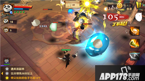 今天给大家分享的是《功夫熊猫3》帮会任务里面的抢包子,总的来说,抢包子这个难度算是中等,对战斗力、分析力和反应力都有一定要求,但是只要抓住了技巧,问题不是很大,所以拿三星也是不难的。一般情况下三次内可以完成三星。