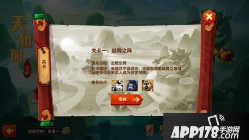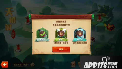 天机阁挑战界面,初次打开的话是难度一的挑战。当然难度越高奖励越丰厚哦!