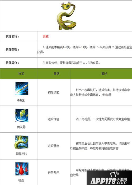 灵蛇是功夫熊猫3手游里的生存型伙伴,擅长施毒和治疗主人。
