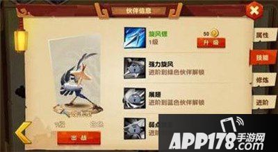 当目前属性达到进阶条件的时候,就可以进阶了,根据进阶的等级,还可以获得相对于的技能哦!伙伴进阶需要一定的材料、可以通过元宝购买、商店购买、万劫之塔获得哦