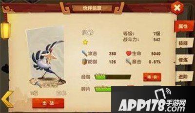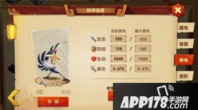 在伙伴信息的界面,通过点击伙伴头像,还可以查看其属性值、技能、修炼情况、进阶等信息哦!