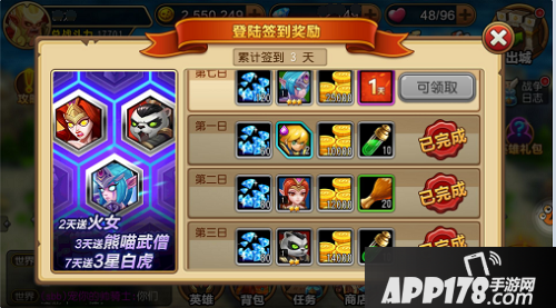 先说一下游戏的活动。7天登陆奖励将送三个英雄,这三个英雄在几次的测试中都稍有变化,但是唯一不变的英雄是第三天的熊猫,熊猫是个相当猛的肉,两个技能都是群伤。在竞技场和之后的亡灵之塔都非常好用。所以坚持到第三天拿到熊猫,好好培养,绝对在初期是个非常厉害的英雄。另外第二天如果是火女,那也是极好的,火女的单体技能几乎可以秒杀对面英雄,再加上熊猫抗在前面,竞技场在黄金组之前几乎不会遇到任何抵抗。第7天的英雄经常会变化,变来变去也不怎么样,除非是4星的鲶鱼人,如果是这个英雄那么肉盾家族一定要有他的存在,对于非R玩家非常的重要,4星鲶鱼人的肉很厚并且升级品阶的时候也会比其他英雄快一些。免费的活动月签是一定要签的,蚊子腿也是肉嘛。况且还有个累计签到礼包,签到才有的哦。