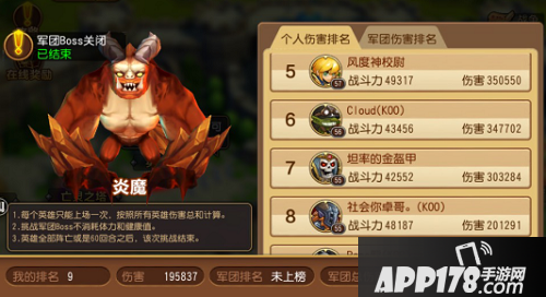 当你对军团Boss的伤害在军团里排行前10,那么就可以在军团Boss伤害榜上看到你的大名,上了榜单,奖励肯定少不了,当天的奖励将在晚上通过邮件发给你。
