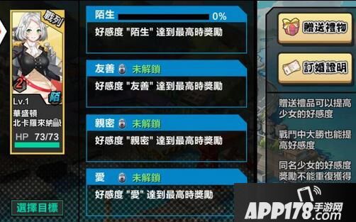 Ø好感度提升:舰船的好感度分为陌生、友善、亲密、爱四个阶段。每到达一个阶段,都会解锁新的对话。好感度的提升可通过战斗、赠送礼物获得。