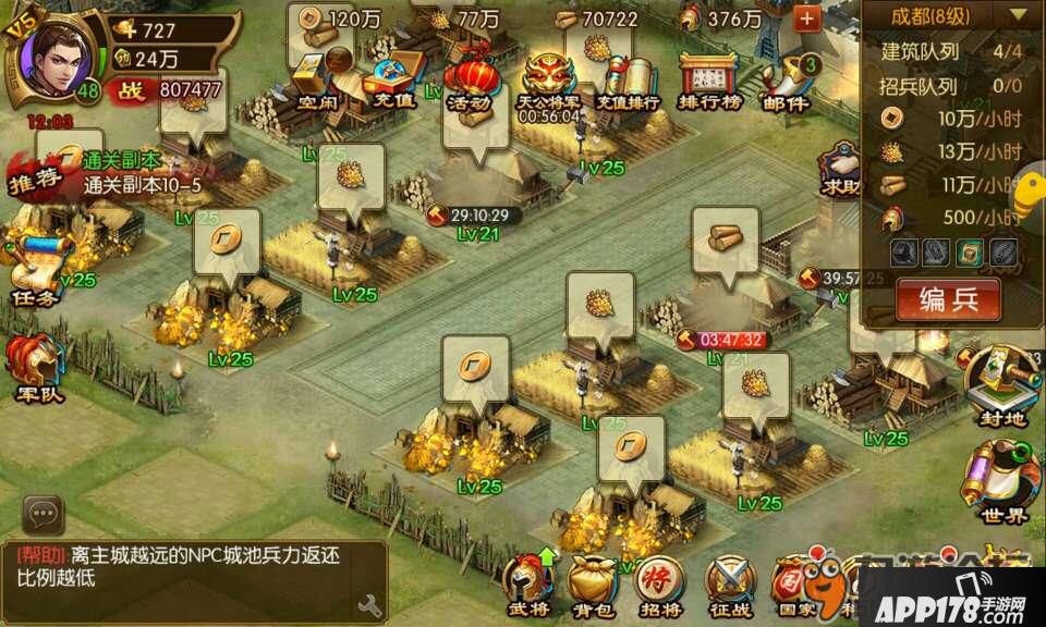 提示:【重要】资源建筑等级越高场产量越高,主要资源获得都要靠资源产量。