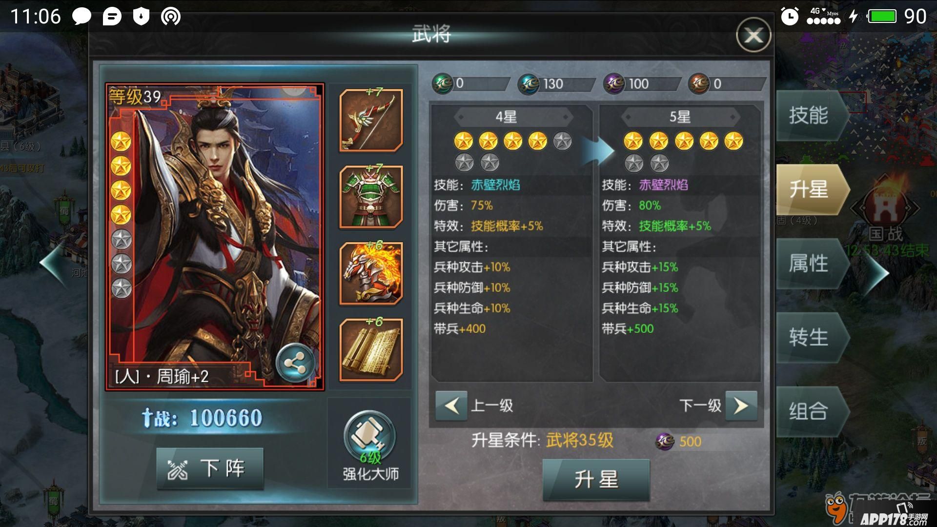 所需的物品是朱雀石这些东西,然鹅这些东西怎么获得呢!目前来看只能通过打国战、一统江山获取战功来换取,所以想要把武将升的更高星!多去打国战吧