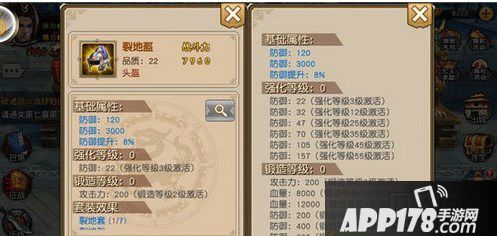我们知道,天命武神身上可以佩戴8件装备,除1件旗帜外,另外7件可以通过游戏里副本、抽取、兑换获得。首先,向大家强力推荐裂地铠甲和头盔,自带属性良好。在所有同部位橙装里属性是最好的,提升血量和防御都非常不错。同样2件的套装属性增加的50000气血更是增加了战场存活率。