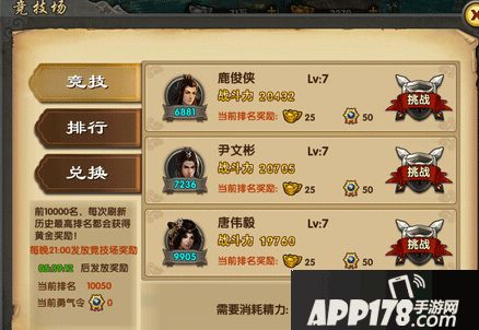 APP178手游网>关云长>游戏攻略>关云长手游之竞技场攻略 竞技场挑战技巧