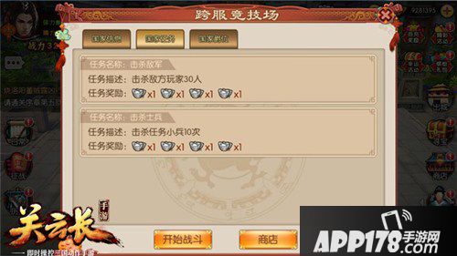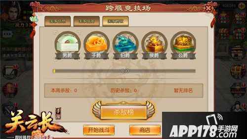 每天晚上10点,地图中间会刷新出一个boss供所有服务器的玩家争抢。玩家杀死敌服玩家角色或者完成任务都可以获得功勋奖励,功勋可以在战争商店兑换各种道具,也可完成相应国家任务进行功勋获取。此玩法中会根据玩家获得积分的多少分为公、侯、伯、子、男5个爵位,每达到一个爵位,会在战争商店中解锁新的兑换商品。