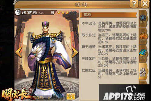 小编先从人气最高的蜀将开始介绍,不可否认,蜀将中不管是刘、关、张,还是赵云和诸葛亮,五人均有着超高的人气。从古至今,三国最强战力的归属也一直没有一个权威的定论,那么在《关云长》手游中武将的羁绊便是搭配出战的核心。