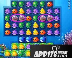 1、99关4条蓝色鱼的位置是不变,在蓝色鱼数量达到要求之前,尽量不要在贝壳旁边进行消除,防止蓝色鱼被珍珠顶掉。