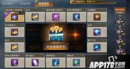 大大们可以前往幸运射击—超值橙枪来抽取自己的专属折扣,之后在活动持续时间内,大大们都可以以更加优惠的价格来进行幸运射击啦!