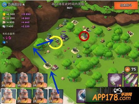 低本玩家推荐使用坦克,炸掉哨兵塔和小加农炮,然后坦克去按照线路站在一个安全位置,只有导弹发射器打得到。
