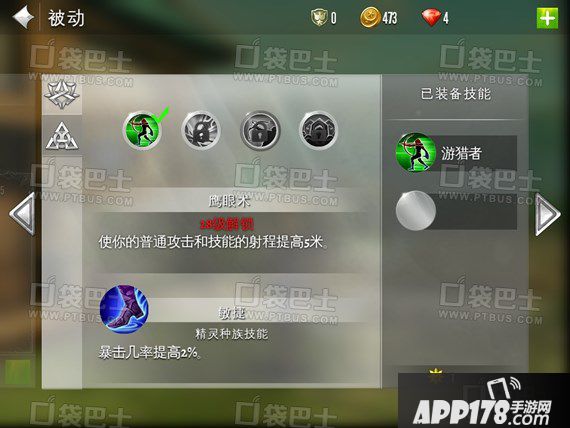 所有职业都有四个被动技能,游侠的四个技能分别是:游猎者、梦魇、鹰眼术和原动力。作用分别是对减速单位额外造成伤害,暴击是额外提高伤害,射程加长和对远距离单位造成额外伤害。从中我们不难看出,游侠的伤害来源于对敌人距离的保持,说通俗一些就是要不断的风筝敌人。其中最后一三偏向PVP,二四偏向PVE。