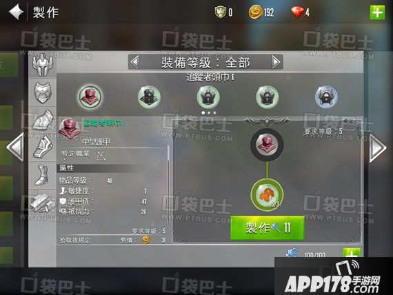 点击主界面左侧的按钮,在其中就可以找到。做套装需要一定的材料以及制作值,除此之外还能看到或制作的装备信息,以及不断升阶的效果。左侧是对应不同部位的装备,昨晚一整套还有额外的套装效果哦!