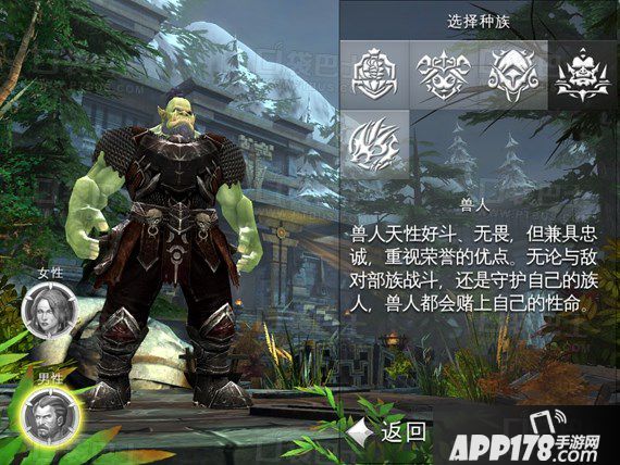 兽人族造型格外霸气,尤其是兽人男那霸气的外表,加上震天怒吼的动作,简直让人热血沸腾。游戏中的兽人有着最高的力量成长,敏捷成长也很不错,但是智力...咳咳,这个种族大概并不需要多少智力。最适合的职业毫无疑问是战士,兽人天生就是战斗的种族,只有战士才符合兽人勇猛和暴力的性格。当然由于高力量成长带来的物理加成,血骑士和游侠也都非常适合兽人,但是靠智力为生的法师就完全不适合用兽人来担任。