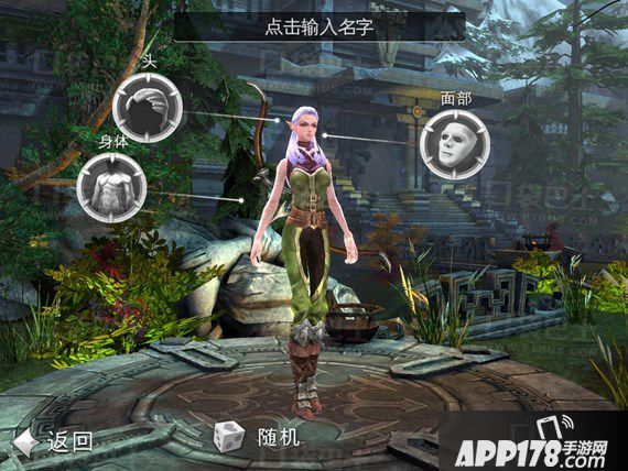然后就是设定外观和取名了,游戏中一共有三种外观可以设置,分别是头、面部和身体懒的话下方的筛子可以全部随机。上方设定名字,目前不知可不可改名(能改也肯定要钻石或者充钱),所以尽量一次性到位吧!