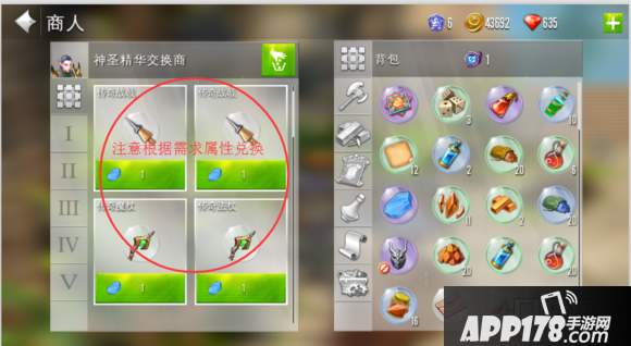 如图所示,请务必注意不要兑换错的所需要的物品,1个神圣精华可以兑换一个传奇武器,玩家可以去打各种BOSS。