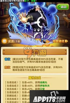 以上就是APP178手游玉米为大家带来的航海王强者之路大熊的详解,相信各位小伙伴都清楚了大熊怎么得,阵容怎么搭配了吧。更多相关攻略,请关注航海王强者之路专区。