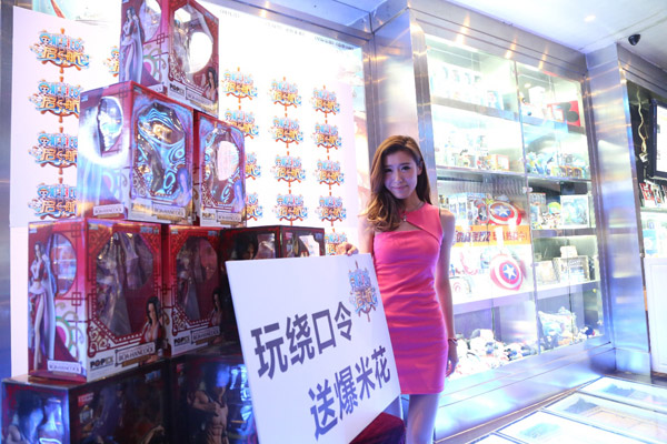 土豪在现场要求,只要读出“看复联2玩《航海王启航》”就送一桶爆米花,5秒读10遍就送一台手机!土豪开心还会送出OP限量手办,据说价值逾千元。于是人民群众疯狂了!即便没有手机,有桶爆米花也是不错的。