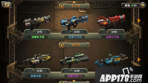 目前开放的激光枪有a级雷霆风暴-Ⅰ、s级雷霆风暴-Ⅱ、s级雷霆风暴-Ⅲ、ss级金色雷霆。雷电枪特质为通电,可以无视地形,对藏在建筑后方的敌人进行无情的打击,攻击力高,暴击中,射程小,范围中,无视障碍物的特点让雷电枪在各种地图保证输出。