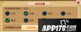 接下来就是武将张飞的培养了,说到培养很多玩家会随意选取属性来培养,而张飞是一个追求极限输出和暴击的武将,所以在培养张飞的时候只选择攻击和暴击这两种属性,在内丹数量较多的情况下可以只保留完美的品质,这样在培养完之后会获得大量的战力加成,让你的张飞更加强力。