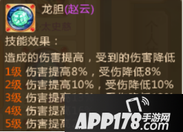 赵云的专属技能是龙胆,提升伤害并减少受到的伤害,会根据专属技能的等级增加伤害。