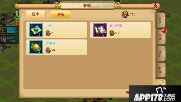 在联盟商店里可以购买内丹、天书残页和灵兽丹。这三样东西的价格是会随着购买量而增加的,只有每天前20个道具的购买才是原价,后面的会成倍上涨,这个要注意。