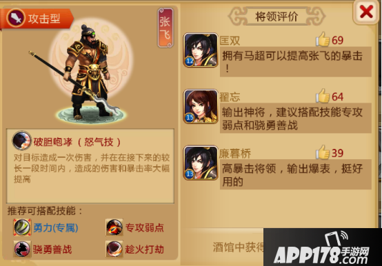 第一:当然是张飞(张三哥),属于高爆发武将,专属技能破胆咆哮,单体高爆发的技能,可以说是输出神技,配合技能越战越勇,专攻弱点,令人闻风丧胆