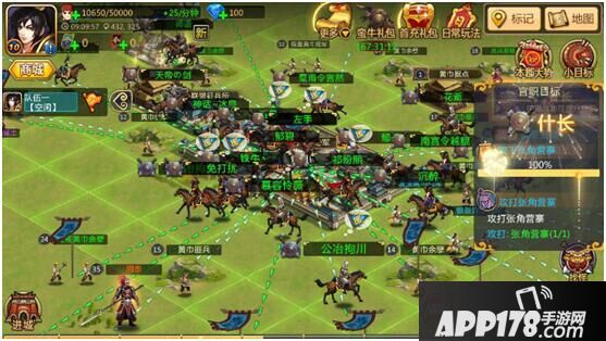 当然,将领只是基础,策略性非常强的技能玩法更是游戏的一大亮点。多支队伍可以任意搭配组合,攻城略地大地图24小时开放,NPC县城、州城、郡城、中央州大战场,每一个目标都需联盟成员共同协作方能化险为夷。同一个联盟同一个核心的设定让玩家更有凝聚力。