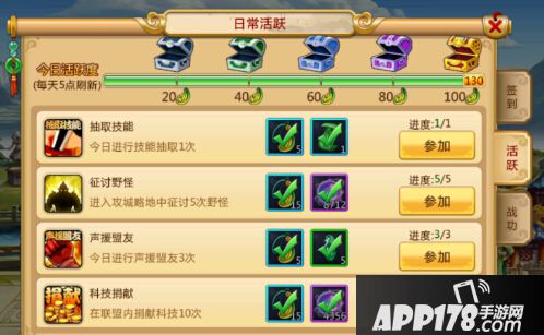 游戏中各种支线或主线的任务栏任务,完成也是由大量的经验,所以主公可以根据任务栏来完成任务快速获得大量经验