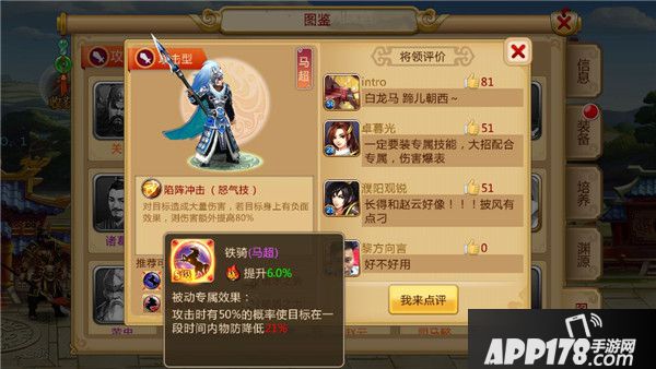 看到月英的技能后,脑海里自然就浮现出马超这武将。马超的大招对有负面效果的敌方有巨额的伤害加成,而且马超本身的被动是降低敌方的物防,跟月英大招的相性非常不错。因此他们两个搭配起来会很好用。