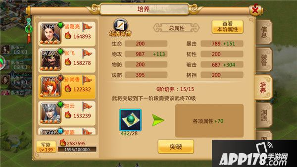 香香培养,尽量将输出最大化,优先考虑破击,暴击,物攻,因为其装备特性,破击和暴击属性加的比较少,而输出基本都是敌方前排,格挡几率高,所以破击算是收益最高的。