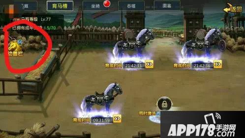 本文有玩家无双先来一张无双的战绩图,看下图中的幼兽栏,66匹幼兽,都是野外驯服马匹所得。