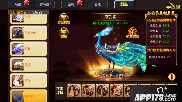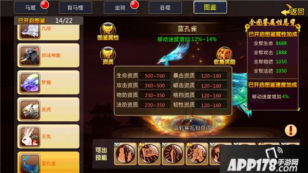 在资质属性方面,孔雀跟之前的圣虎是一样的,不过要注意的是它没有专属的图鉴奖励。