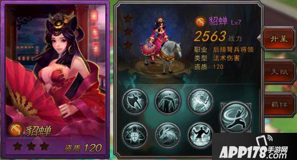 3、貂蝉:作为中后排武将克星的后排武将,貂蝉同样克制自身。