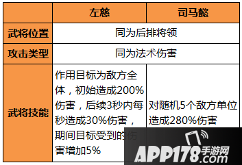 在5.0版本战斗机制优化的大环境中,孙尚香单体爆发已现疲态,单将无法再对敌方中后排构成秒杀威胁,因而左慈或司马懿的群攻补充势在必行。武将位置和攻击类型相同的两个武将,司马懿的爆发更纯粹——直接造成280%的伤害,而左慈则是初始200%伤害后,还在后续3秒内造成90%的伤害并施加给敌方一个伤害加深的debuff。对比来看,司马懿拥有更强的瞬时爆发,而左慈技能的长时间收益会更高。