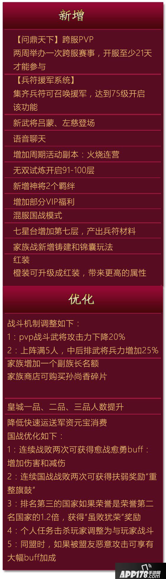 再次贴出5.0版本的主要更新内容,主公们可以根据自身详情早作准备,在更新之后占据主动。
