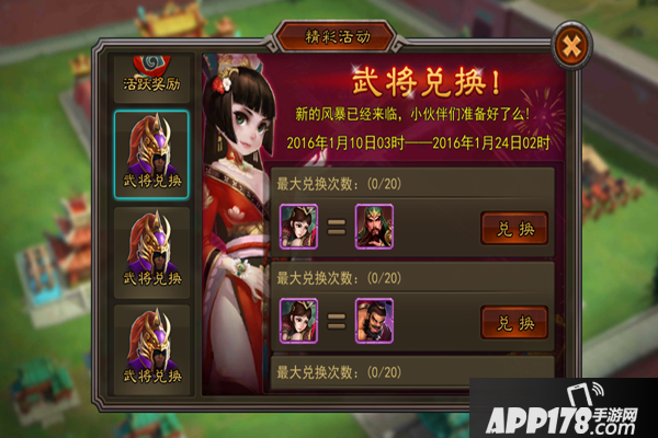2:部分武将兑换活动:关羽、黄月英、孙尚香;