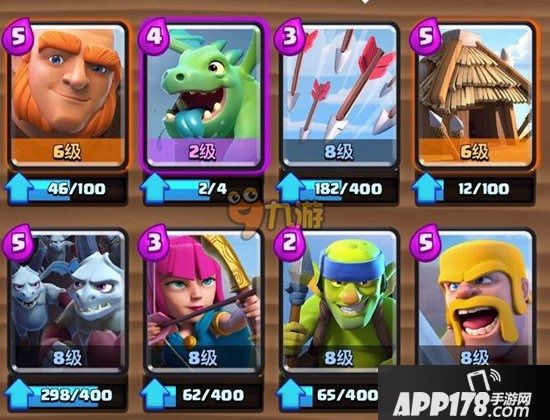 巨人+飞龙宝宝+箭雨+哥布林小屋+亡灵大军+弓箭手+哥布林投手+野蛮人