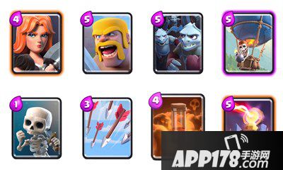 APP178手游网>皇室战争>游戏攻略>A5-A7冲杯卡组:毒药气球流