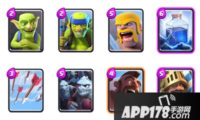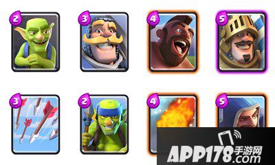 哥布林投手:哥布林是游戏里最强的一张卡,可以搭配冲锋进攻,可以防守对空。