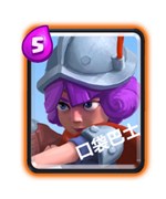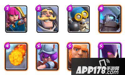 弓箭手:类似于长矛哥布林,弓箭手(简称MM)多了一费,但是伤害更高,血更厚。拿八级卡牌为例,mm是241点血,长矛只有100点,所以长矛会被箭雨,飞龙宝宝,法师,小闪电等等卡牌一击击杀,但mm可以在这些情况下保证生存。不过,高等级游戏中,mm会很快地被公主淘汰掉。