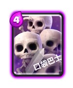 骷髅海:如果你在新手期抽到了这张紫卡,确实可说是“悲剧”。因为它的单卡强度娇弱,需要配合(操作水平)且可算得上一张功能牌,不过,套路方面确可以说得上是“千变万化”。骷髅海中夹杂着巨人,或者是女炮手,或者是迷你皮卡,甚至可以是炸掉兵(不要小看它的攻城伤害)或王子,其实都是很致命的。至于,在飞龙或者是后期冰冻法术掩护下的攻城均是非常厉害的。总之,表面上看是一张“不咋地”的紫卡,但比较依赖玩家的意识与操作。这也可以看作是皇室战争与炉石传说的典型差异之一。本作独到的迷人之处。
