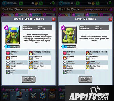 这些绿皮生物是卡组中的中坚力量无可替换,一共八张卡就有四张跟这两只哥布林脱不了关系。他们是开局优秀的探路兵,中期的优秀炮灰,以及双倍圣水时期的核心爆发。数量多、攻击高、攻速块、移速快都是他们的优点,但是缺点很明显,就是血量确实感人,往往成群结队的哥布林被对手一个箭雨就全部蒸发。