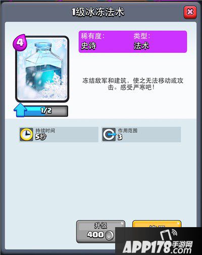 冰法的应用主要是辅助位置提供减速效果,进攻端可以帮助清理小怪和减少敌人输出,防守端的表现非常出色,是突击单位和重型单位的克星,在后排持续控制敌人,而且不容易被法术和突击秒杀,简单来说就是非常恶心敌人,攻守兼备。冰法的特效就值2费,1费给了这么好的基础属性已经是非常划算了,个人认为比公主更加好用一些,同时冰法升级增加的属性提升不是非常明显,1级的冰法也够发挥作用,至少顶用到3000分段。