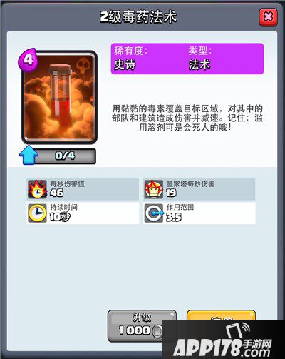 单卡应用主要是消磨群体单位包括建筑物的血量,位置要合理,尽可能让敌方单位长时间处在毒药法术范围内。还有毒药+冰冻的法术组合,几乎完全封锁敌人的移动力,对于突击部队是噩梦般的处境。特别要留意毒药法术的缓慢生效特性,避免敌人存活期间的有效输出。克制毒药法术就是分散站位,新部署的单位在局势允许的情况下尽可能放在毒药范围之外,才能有效移动和输出。4费的消耗能否物有所值,还看随机应变。