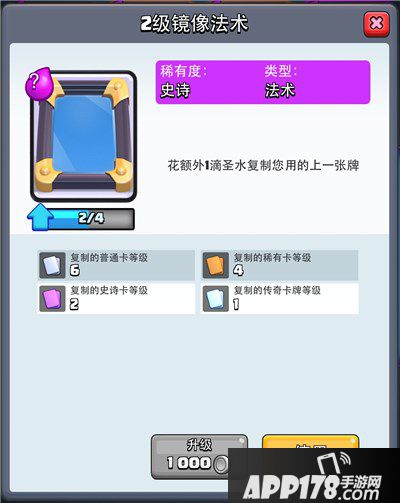 镜像法术是一张非常有趣的法术,能够短时间两次施放同一张卡,代价是增加1费的消耗,第二张卡的等级依据卡牌品质和镜像法术等级而定,经过削弱传奇卡比原先减少了1级。镜像法术相对于额外增加一次威胁,是一张很灵活又比较笨重的法术。