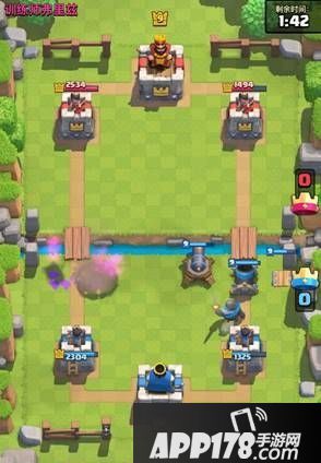 然后,谈一下起手,因为之后的变化都是根据形势而变,并没有定论。起手如果有骑士或者宝宝龙,我会等满费后观察一下对手动作,如果依然没有动作,就沉底下条龙或者骑士。如果都没有,我会黄金位放个炮塔。直接下迫击炮不太好,容易亏费,对手下个黄毛你得出龙或者塔去解,对手另一路放个猪就炸了。