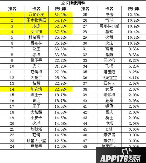 APP178手游网>皇室战争>游戏攻略>皇室战争卡牌使用率 卡牌升级指导